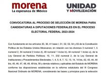 Emite Morena convocatoria para Diputaciones y Senaduría 2024