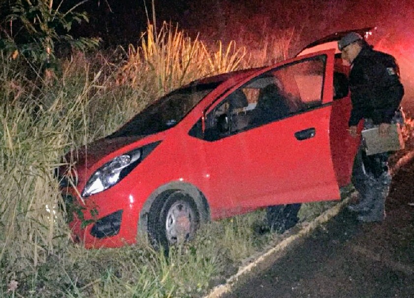 Coatepec, Ver.- Un auto compacto salió de la carpeta asfáltica en el libramiento de la autopista Xalapa-Coatepec la noche de este viernes. Se reporta un lesionado.