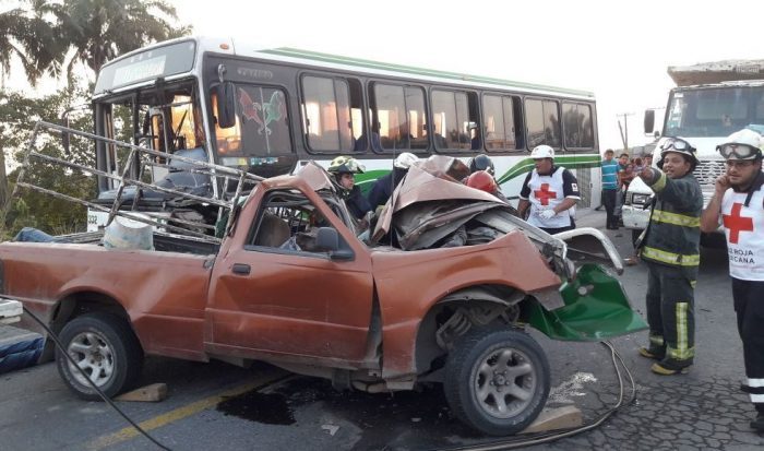 Mueren seis al chocar autobús y camioneta en carretera Veracruz-Paso de Ovejas