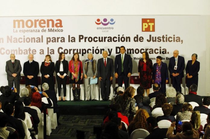 Ciudad de México. Andrés Manuel López Obrador, precandidato de la coalición “Juntos Haremos Historia” presentó hoy sus propuestas de ternas para procurador General de la República y fiscales electoral y anticorrupción.