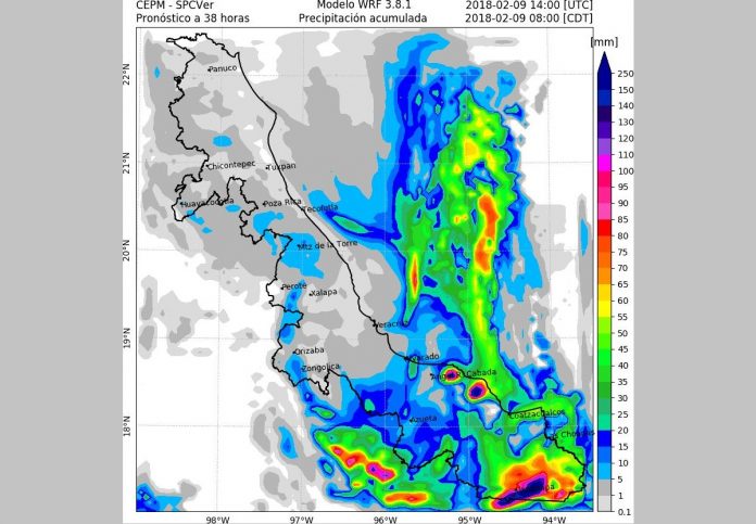 De acuerdo al Reporte de la Secretaría de Protección Civil emitido la mañana de este jueves, el #FrenteFrío27 ya cruza el centro de Veracruz y en combinación con una vaguada genera nublados con lluvias aisladas (tormentas en el sur). El viento en la costa se intensifica registrándose rachas de 40-50 km/h en estación de la Administración Portuaria de Veracruz.