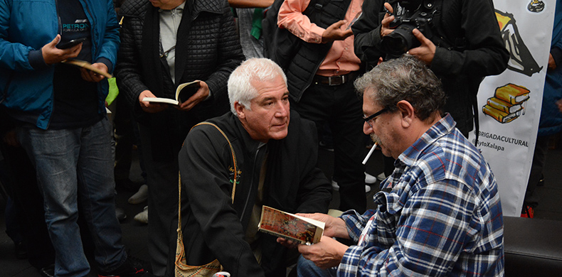 “La culpa de que esté aquí es mía. Cuando la ‘Brigada para leer en Libertad’ dijo ‘vamos a hacer una feria en Xalapa’, dije, pido ir a inaugurarla porque estoy en casa, porque acabo de terminar una novela corta que se va a llamar ‘El olor de las magnolias’, y la historia sucedió a unos cuantos kilómetros de aquí, entre 1900 y 1906. Es mi primera novela casi xalapeña”.