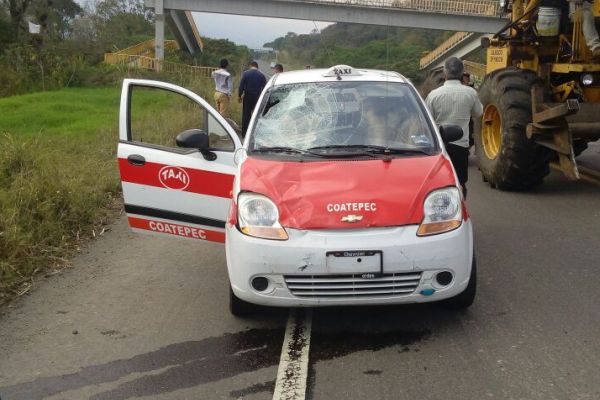 Coatepec, Ver.- Un joven de dieciocho años de edad resultó atropellado por un taxi de este municipio la tarde de este miércoles en el libramiento Coatepec cuando se desplazaba en su bicicleta.