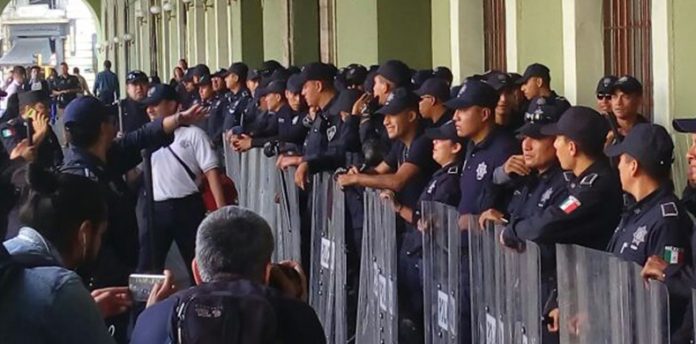 General Llegan Granaderos de SSP a desalojar manifestantes de limpia pública que exigen pagos pendientes Por Redacc1 - febrero 21, 2018 0 201 Compartir en Facebook Compartir en Twitter Xalapa, Ver.- Granaderos de SSP llegan a desalojar a manifestantes de limpia pública que exigen pagos pendientes