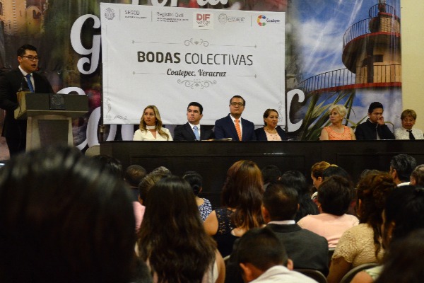 En punto de las diez de la mañana, el alcalde de Coatepec dió inicio a la ceremonia que de inmediato presidió el licenciado Luis Fernando Polanco, quien dirigió un emotivo mensaje a las treinta parejas reunidas al interior del auditorio Benito Juárez del Palacio Municipal.