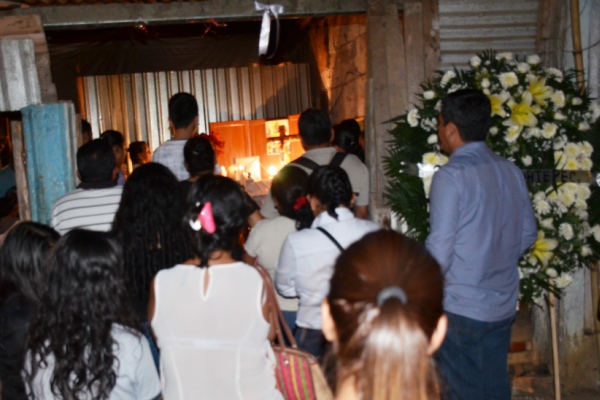 En carros, motocicletas y al menos diez bicicletas llegan distintas personas para acompañar a los familiares de José Luis Pérez Pedroza, quien yace dentro del féretro acompañado por su padre y un tío, los únicos familiares del difunto ciclista.