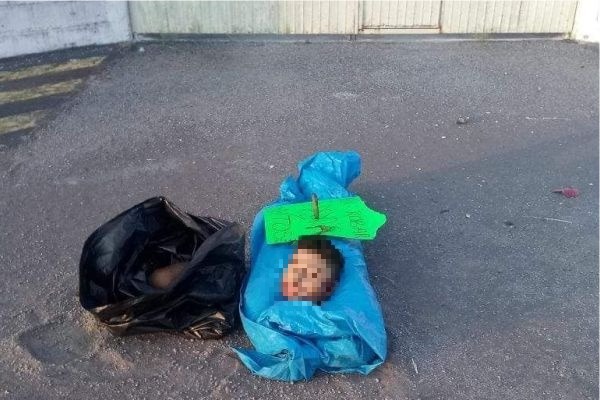 Un cuerpo fue dejado a la entrada de una subestación de la Comisión Federal de Electricidad, sobre una bolsa color azul y con una cartulina a un lado. Mientras que los restos de otras personas fueron hallados a un lado de la carretera, cien metros adelante.