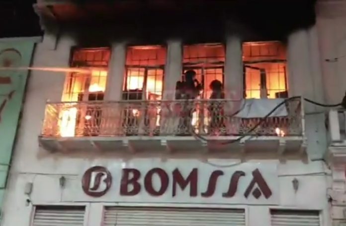Se trata de un local comercial llamado «Bomssa» ubicado en la avenida 5 de Mayo entre Esteban Morales y Arista que minutos después de las ocho de la noche de este miércoles se ha iniciado un fuerte incendio en el interior.