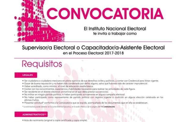 Caotepec, Ver.- Mediante una publicación emitida este día, el Consejo Distrital del OPLE en Coatepec, convoca a la población de 10 municipios de la región que desee laborar durante 40 días como Supervisor Electoral o Capacitador, puede acudir a las oficinas a entregar su documentación.