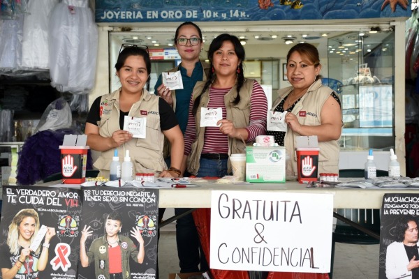 Xalapa, Ver.- Para informar a la población y hacer visible la importancia de su cuidado y protección, personal del Instituto Municipal de las Mujeres de Xalapa (IMMX) aplicó este jueves pruebas rápidas y gratuitas para la detección oportuna del Virus de Inmunodeficiencia Humana (VIH), en el pasillo principal del mercado Jáuregui.