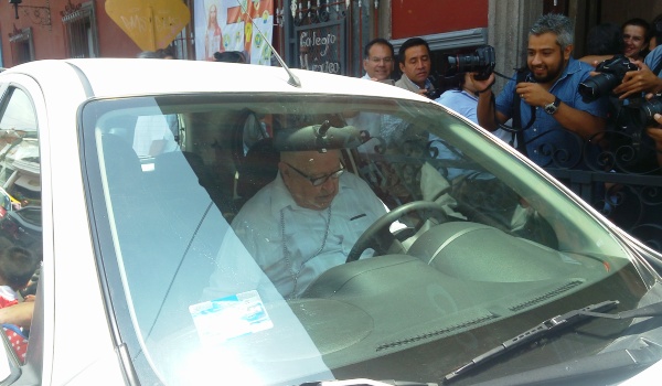 Finalmente, Monseñor Sergio Obeso se retiró del Colegio México abordando su auto, un Nissan March color blanco, el cual él mismo arrancó y manejó retirándose del lugar.