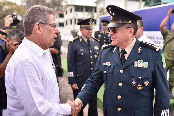 Veracruz, Ver.- En representación de la Sexagésima Quinta (LXV) Legislatura de Veracruz los diputados José Manuel Pozos Castro y Juan Javier Gómez Cazarín, presidentes de la Mesa Directiva y de la Junta de Coordinación Política, respectivamente, asistieron al acto de toma de posesión de mando del General de División Ingeniero Constructor, Diplomado de Estado Mayor, Francisco Ortiz Valadez, como comandante de la Sexta Región Militar.
