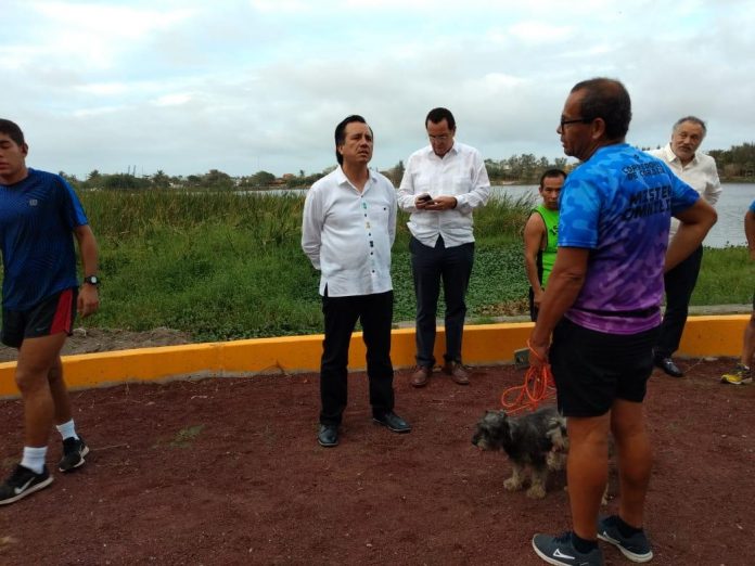 Veracruz, Ver.- El gobernador Cuitláhuac García Jiménez recorrió la tarde de este miércoles la Laguna Lagartos, ubicada al Norte del Puerto de Veracruz, donde hizo una evaluación del mejoramiento para la preservación de este espacio y de esta manera promover el esparcimiento seguro de todas las personas.