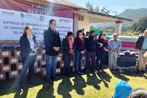 Ayahualulco, Ver.- La Secretaría de Protección Civil (PC) de Veracruz en coordinación con autoridades federales y municipales hizo entrega de insumos a la población de San José Aguazuelas para afrontar las bajas temperaturas, en atención a la Declaratoria Extraordinaria de Emergencia emitida el día 21 de diciembre de 2018.