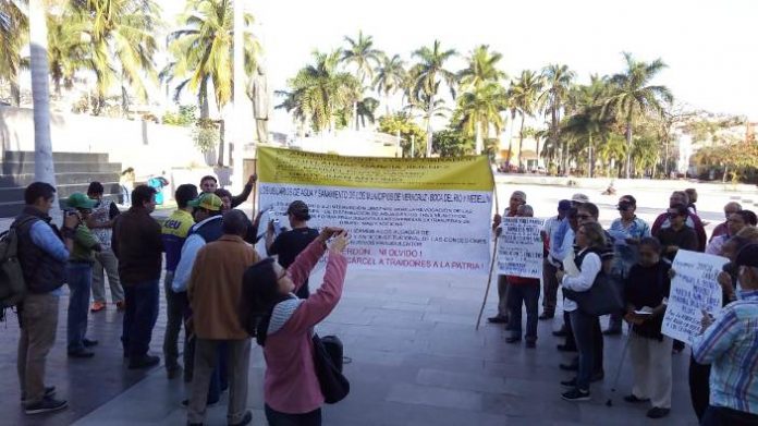 Boca del Río, Ver.-Habitantes de los municipios de Veracruz, Boca del Río y Medellín, se manifestaron frente al palacio municipal de este municipio, piden a toda la población no pagar el agua y solicitaron la revocación de la concesión al Grupo MAS y Acciona Agua «que fueron otorgadas de manera fraudulenta a empresas extranjeras».