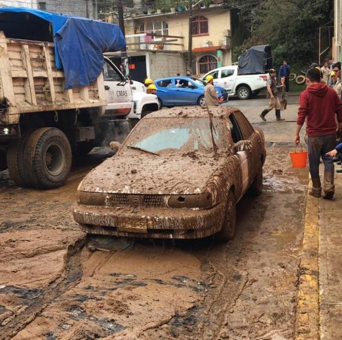 El hecho se registro esta mañana de sábado, cuando un deslave dejó bajo un denso lodo a un taxi y a un vehículo particular sobre la calle Tabasco en la colonia anteriormente citada.