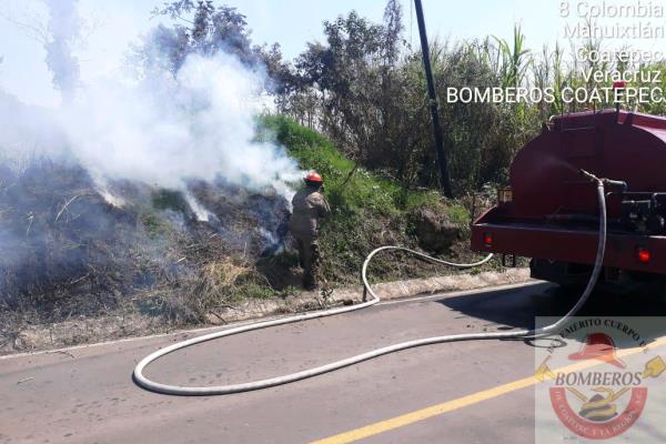 Elementos del Cuerpo de Bomberos Coatepec a cargo del Comandante Diego Solano acudieron a este lugar donde poco antes se había realizado la quema de basura sin embargo ésta se salió de control alcanzando un pastizal seco, por la #OlaDeCalor por lo que vecinos pidieron el apoyo.