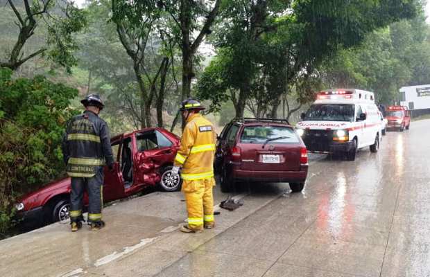 Coatepec, Ver.- Dos menores de edad y una señora fueron atendidos por paramédicos de la Cruz Roja esta tarde, luego que el auto en que viajaban chocó al pasar por la fatídica curva de Rio Sordo del Bulevar hacia Coatepec.