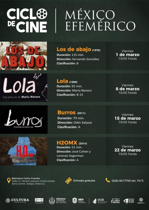 La cita es los viernes, a las 18:00 horas, en el Auditorio de la Biblioteca “Carlos Fuentes”, perteneciente a la Dirección General de Bachillerato (DGB), donde los interesados podrán disfrutar del Ciclo “México Efemérico”, nombrado así porque cada película corresponde a una efeméride del mes.
