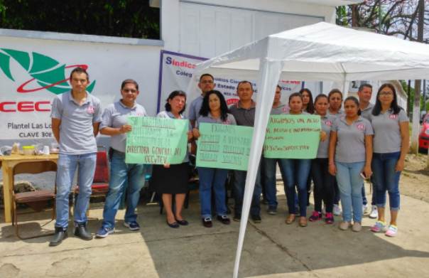 “Desde el mes de diciembre venimos padeciendo la falta de respeto y por lo tanto la base trabajadora a través del Comité Ejecutivo Estatal está gestionando el respeto al contrato y la destitución de la directora”, indicó la docente Ruth Victoria Lagunes González.