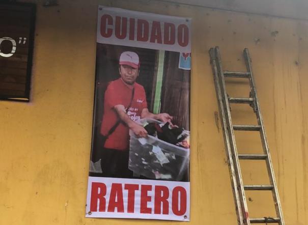 Coatepec, Ver.- En seguimiento de la manifestación, los vecinos de la calle Constitución han instalado lonas en la vía publica con imágenes de supuestos asaltantes.