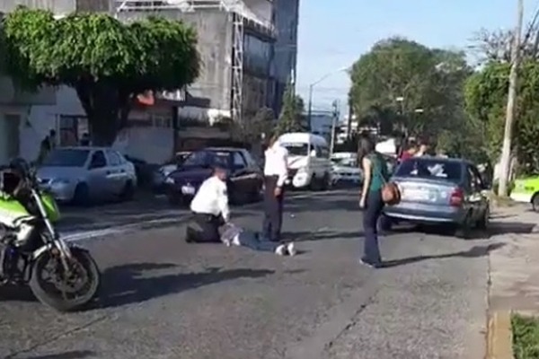 La joven mujer, que se presume sería familiar del pequeño, reaccionó y por evitar que el pequeño se cayera al pavimento terminó por proyectarse contra el concreto de la avenida golpeandose en la cabeza.