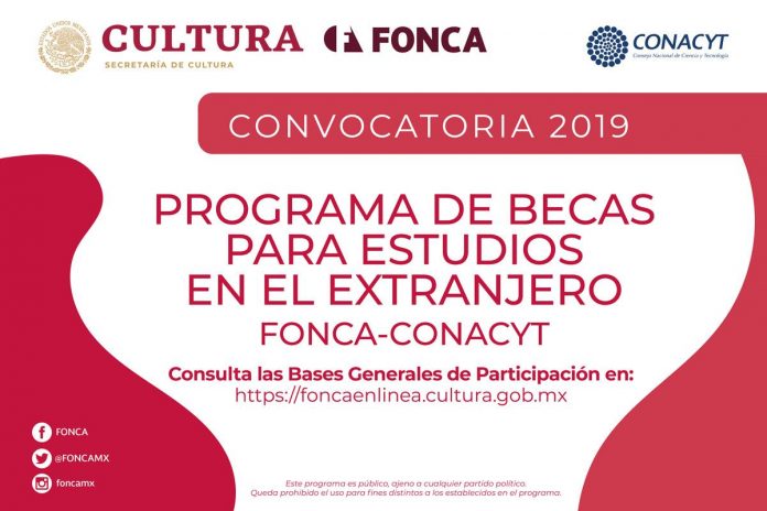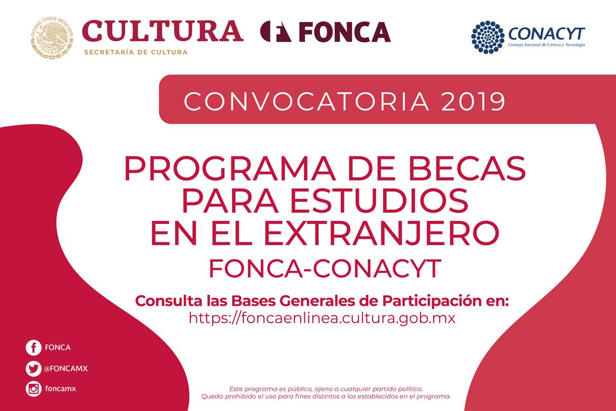 Por otro lado, la beca para Estudios en el Extranjero, a cargo del FONCA y el Consejo Nacional de Ciencia y Tecnología (CONACYT) es para que creadores, intérpretes, profesionistas, promotores y gestores de la cultura cursen estudios de maestría o doctorado en instituciones del extranjero.