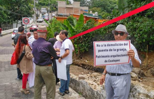 A decir del arquitecto Jácome, el puente es un monumento histórico incluído en el catálogo de monumentos protegidos por el INAH por un decreto presidencial, por lo que los vecinos piden que se revoque ese permiso.