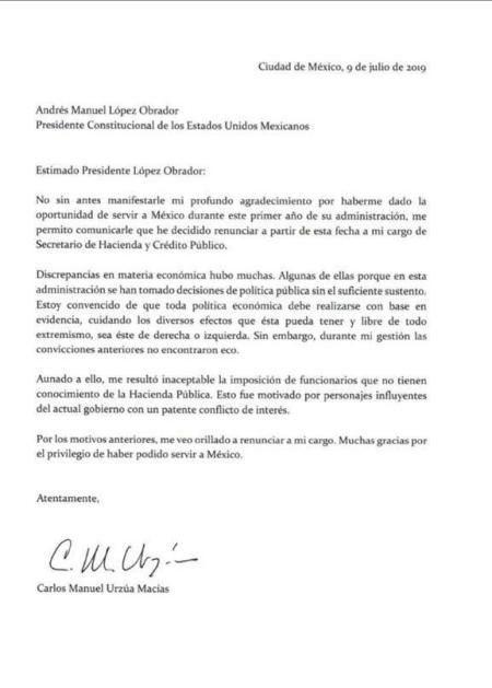 Este martes, Carlos Urzúa anunció su renuncia como al cargo de secretario de Hacienda y Crédito Público. Es la dimisión más importante del gabinete del presidente Andrés Manuel López Obrador hasta el momento.