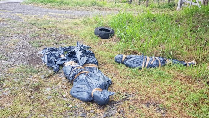 Los cuerpos de tres muchachos fueron hallados embolsados y atados con cinta canela, habrían sido abandonados esta mañana a la altura del kilómetro 157+400 de la carretera federal Poza Rica-Veracruz, con dirección al norte del estado.