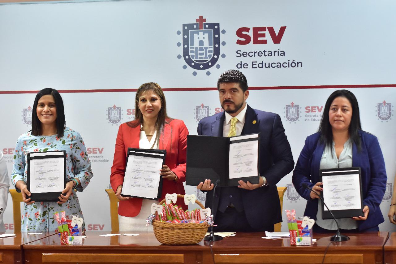 Xalapa, Ver.- La Secretaría de Educación de Veracruz (SEV) firmó un convenio con la Fundación de la Asociación Dental Mexicana en el marco de un programa piloto de técnica y cepillado diario para prevenir las caries en alumnos de nivel básico, que iniciará el próximo ciclo escolar en primarias de la región de Cosoleacaque y, posteriormente, se extenderá a todo el estado.