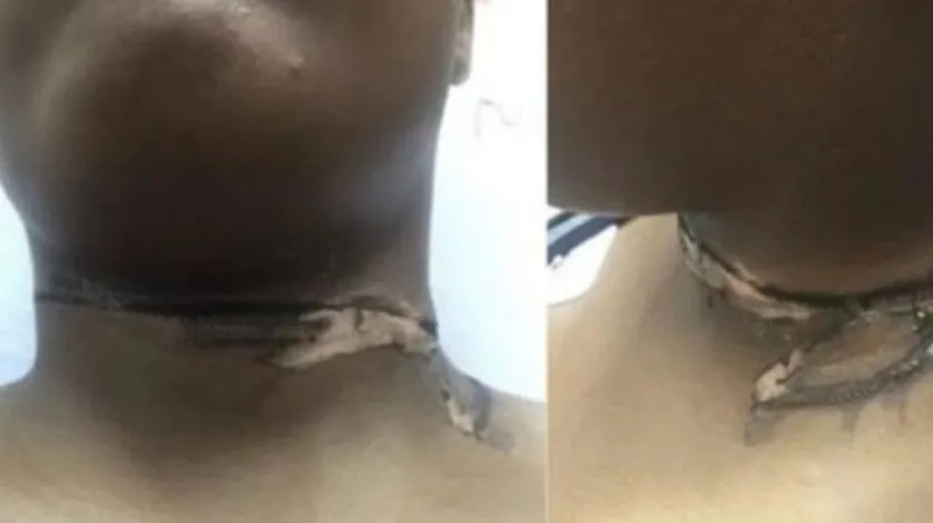 Momentos más tarde, la joven se despertó debido a una gran sensación ardiente en su cuello: La cadena había rozado el extremo del cable, lo que le produjo una descarga en el cuello.