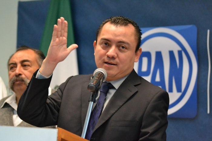 Con pancarta en mano, acusaron de “revanchismo político” al alcalde Fernando Yunes por no querer apoyar al candidato a la dirigencia estatal del Partido Acción Nacional (PAN), “Pepe Mancha”.