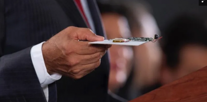 El mandatario envió a persona de la Ayundantía a su despacho a recoger la diminuta cámara para mostrarla a los miembros de la prensa reunidos en la conferencia matutina.