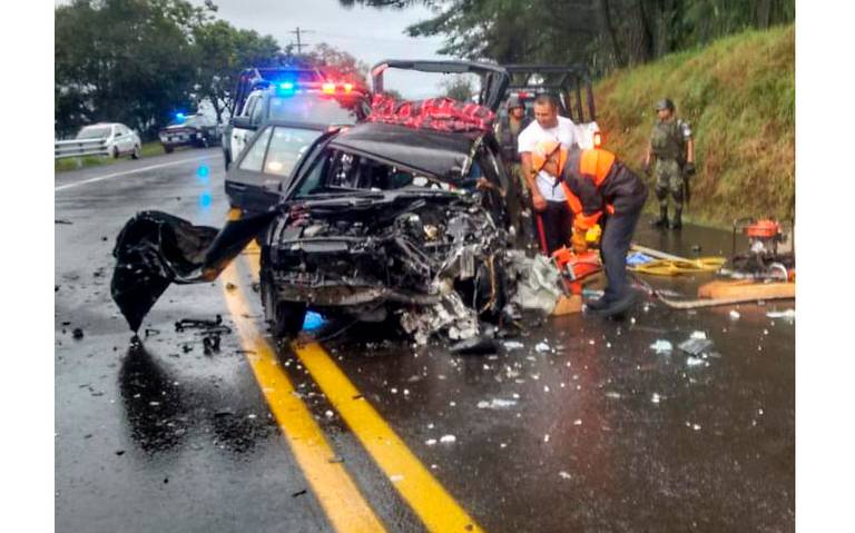 Acajete, Ver.- Cuando circulaba sobre la carretera federal Xalapa-Perote, a la altura de Acajete el conductor de un automóvil compacto se estrellón contra un camión de carga al que se le desprendieron los ejes cuando circulaba por esas curvas.