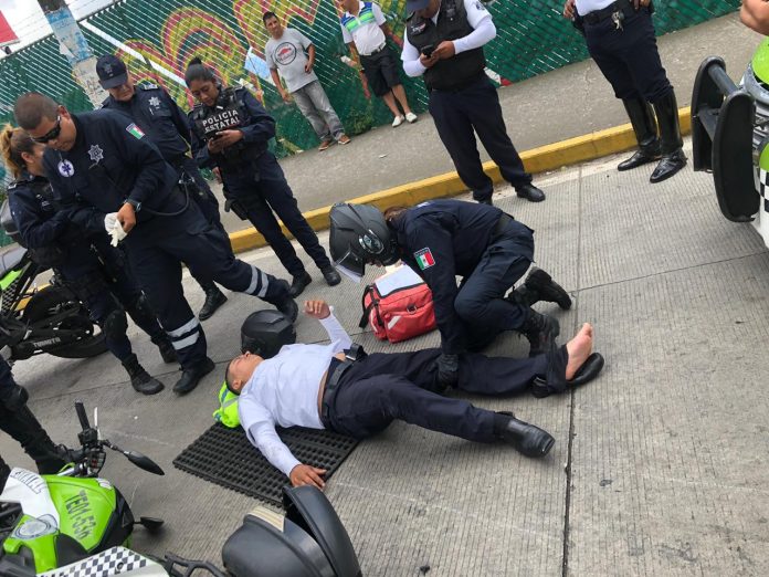 El chofer del vehículo logró darse a la fuga con rumbo desconocido dejando al oficial tirado en el lugar hasta donde llegaron elementos de la Cruz Roja y de la SSP para darle los primeros auxilios.