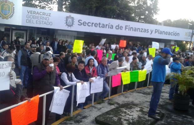 Xalapa, Ver.- Integrantes de la Coalición de Sindicatos de Trabajadores del Poder Ejecutivo del Estado de Veracruz han tomado las instalaciones de la Secretaría de Finanzas desde temprana hora este miércoles.