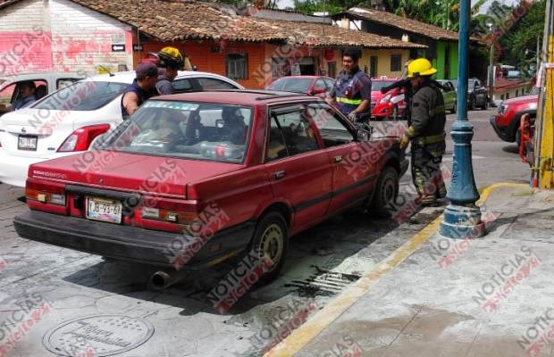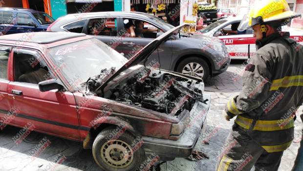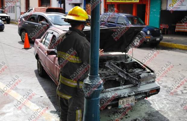 Coatepec, Ver.- Un auto compacto ardió en llamas en céntricas calles de este Pueblo Mágico, la rápida acción de vecinos y cuerpos de auxilio evitó que la situación pasara a mayores, no se reportaron personas lesionadas.