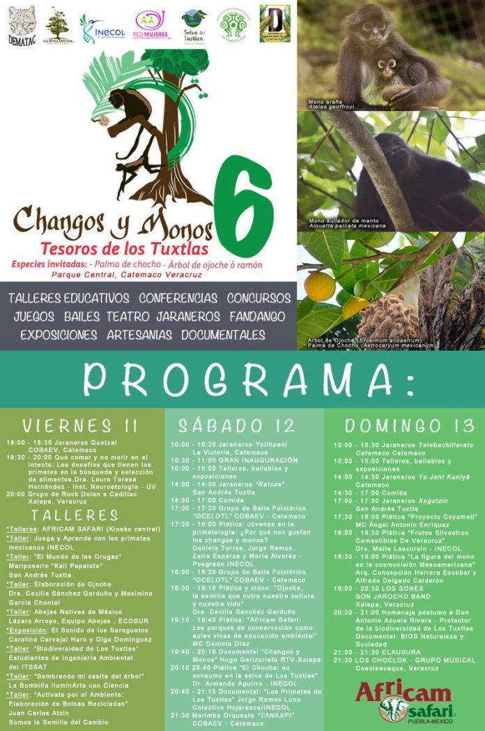 Xalapa, Ver.- La Secretaría de Turismo y Cultura (SECTUR) presentó el Sexto Festival “Changos y Monos Tesoros de los Tuxtlas”, que se llevará a cabo del 11 al 13 de octubre en el parque Francisco I. Madero del municipio de Catemaco, a fin de concientizar sobre el cuidado de los recursos naturales y la preservación de la vida silvestre.