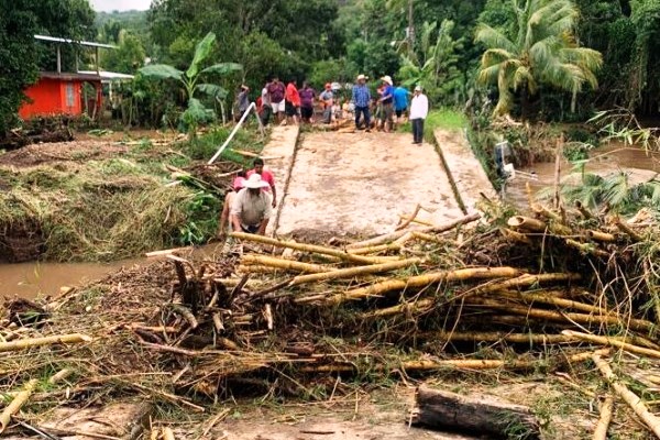 Las fuertes lluvias que trajo el Frente Frío número 4 provocaron afectaciones a varios puentes en la región de Los Tuxtlas, además de que «el rió se metió a las viviendas» de al menos 150 familias, informó el munícipe,