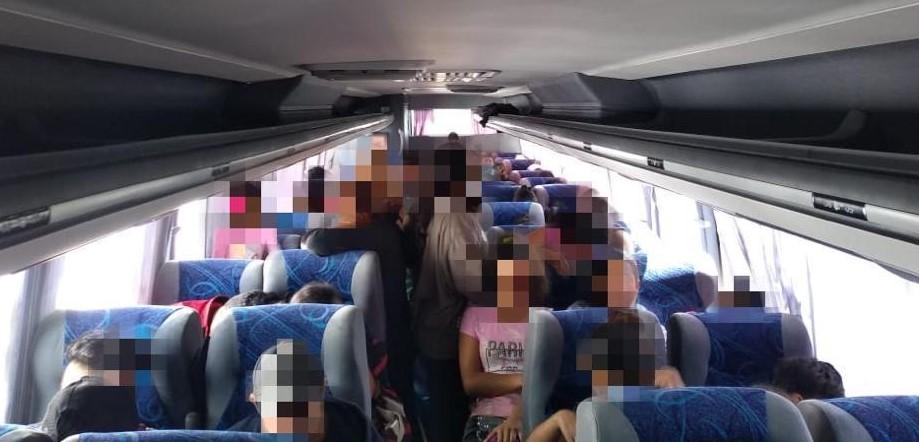Durante un recorrido, oficiales observaron las unidades con placas 054-HU-2 y UVK-948-E, respectivamente, que estaban mal estacionadas; dentro encontraron a 17 menores y 41 adultos de Guatemala, 12 menores y nueve adultos de El Salvador, cuatro menores y 10 adultos de Honduras; así como una persona de Ecuador y cuatro de Nepal.