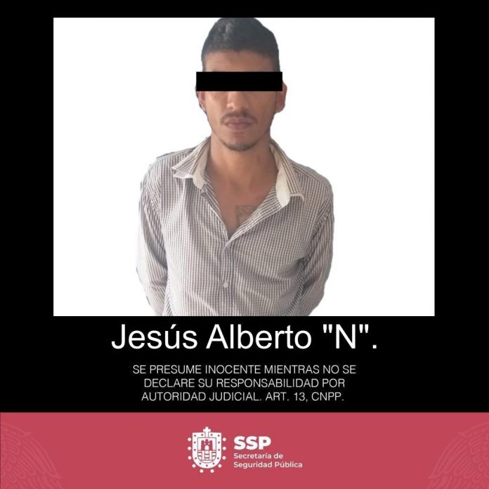 Tantoyuca, Ver., 17 de octubre de 2019.- Elementos de la Secretaría de Seguridad Pública (SSP) aprehendieron a Jesús Alberto “N” en la calle 16 de septiembre de este municipio, donde fueron abordados por un ciudadano que manifestó haber sido amenazado por dicho sujeto en su negocio, exigiéndole dinero.