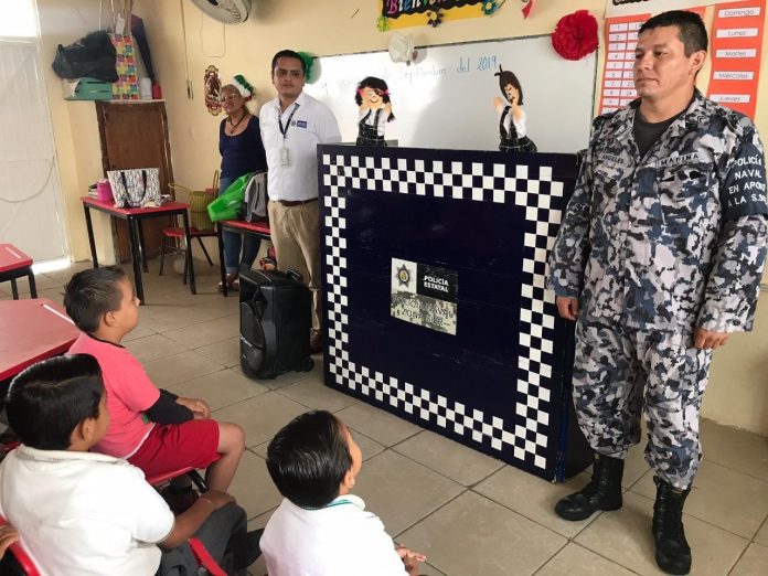 Personal de Policía Estatal recorre instituciones educativas en Coatzacoalcos, promoviendo temas como Líneas de emergencia, Acoso escolar, Uso correcto de redes sociales; implementando a su vez dinámicas como teatro guiñol para preescolar y primaria; asimismo, se imparten pláticas en secundarias, bachilleratos y universidades.