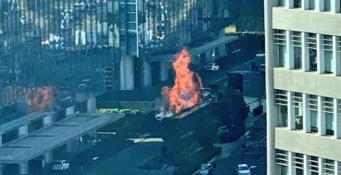 CIUDAD DE MÉXICO.- Esta mañana, se registró un incendio en Park Plaza Santa Fe, provocado aparentemente por un corto circuito.