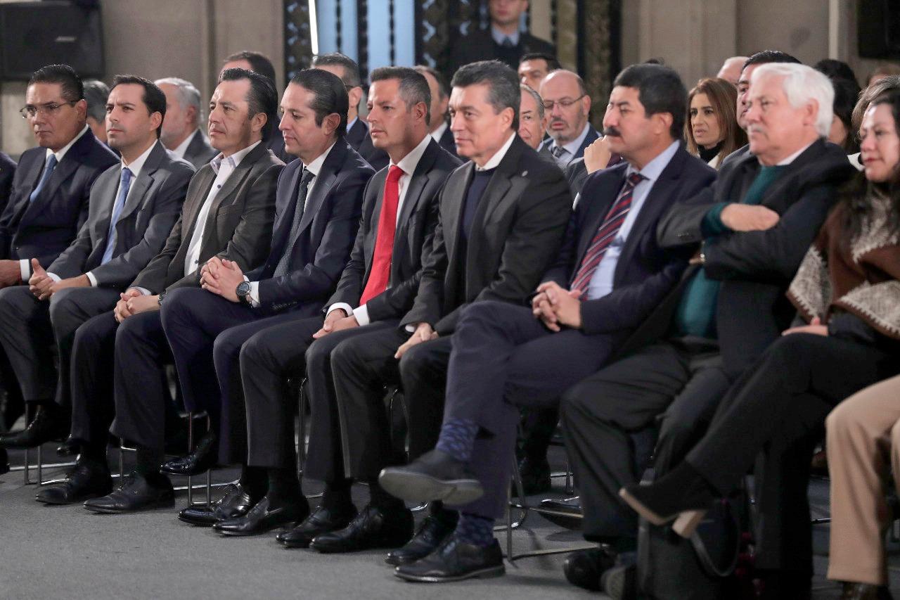 Con la presencia del gobernador de Veracruz, Cuitláhuac García Jiménez, y sus homólogos de Michoacán, Yucatán, Querétaro, Oaxaca, Chiapas, Chihuahua, Zacatecas, San Luis Potosí, Tlaxcala, Quintana Roo, Durango y Colima, el mandatario federal reiteró los cuatro principios para una atención universal y gratuita: mejorar la infraestructura, que haya médicos suficientes, garantizar medicamentos y basificar a 87 mil trabajadores del sector.