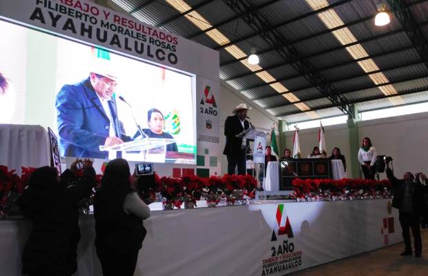 Ayahualulco, Ver.- Con un salón social lleno, el alcalde de Ayahualulco, Filiberto Morales Rosas rindió su segundo informe de labores ante el pueblo de Ayahualulco; dando a conocer las obras, gestiones y obras realizadas por la administración durante el presente año 2019.