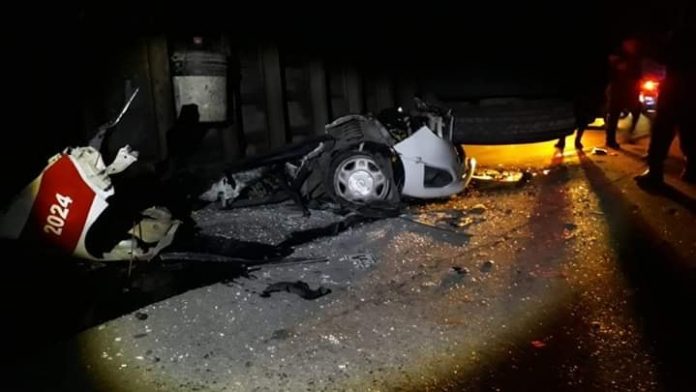MINATITLÁN,VER.-Trágico accidente se registró esta madrugada en el tramo carretero Aguilera-Campo Nuevo, luego de que un tráiler tipo torton volcó y aplastó un taxi del municipio de Minatitlán, dejando saldo preliminar de cuatro personas fallecidas.