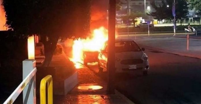 Los grupos armados prendieron fuego a vehículos en las zonas Tabasco 2000, en la Colonia La Manga y en el Centro, sobre Paseo Tabasco, en inmediaciones de la Plaza Bugambilias y por el Ayuntamiento.