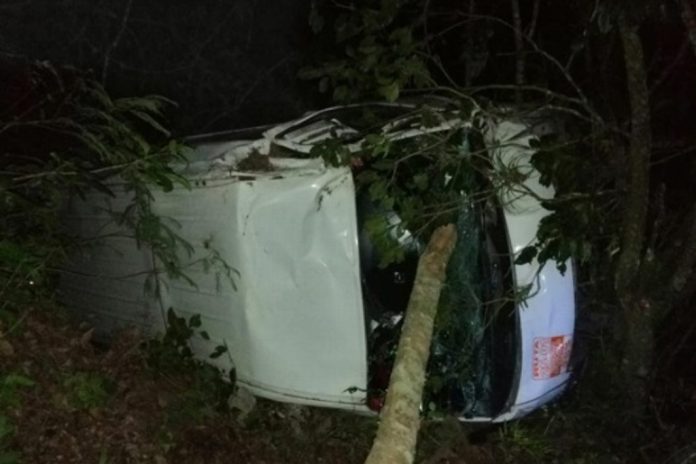 Autoridades confirmaron que el incidente ocurrió sobre la carretera Tianguistengo-Yatipan, donde el conductor de una camioneta Nissan, tipo Urvan, color blanco, con placas de circulación 120-564K del Estado de México, ruta 2501, al parecer perdió el control de la unidad y volcó.