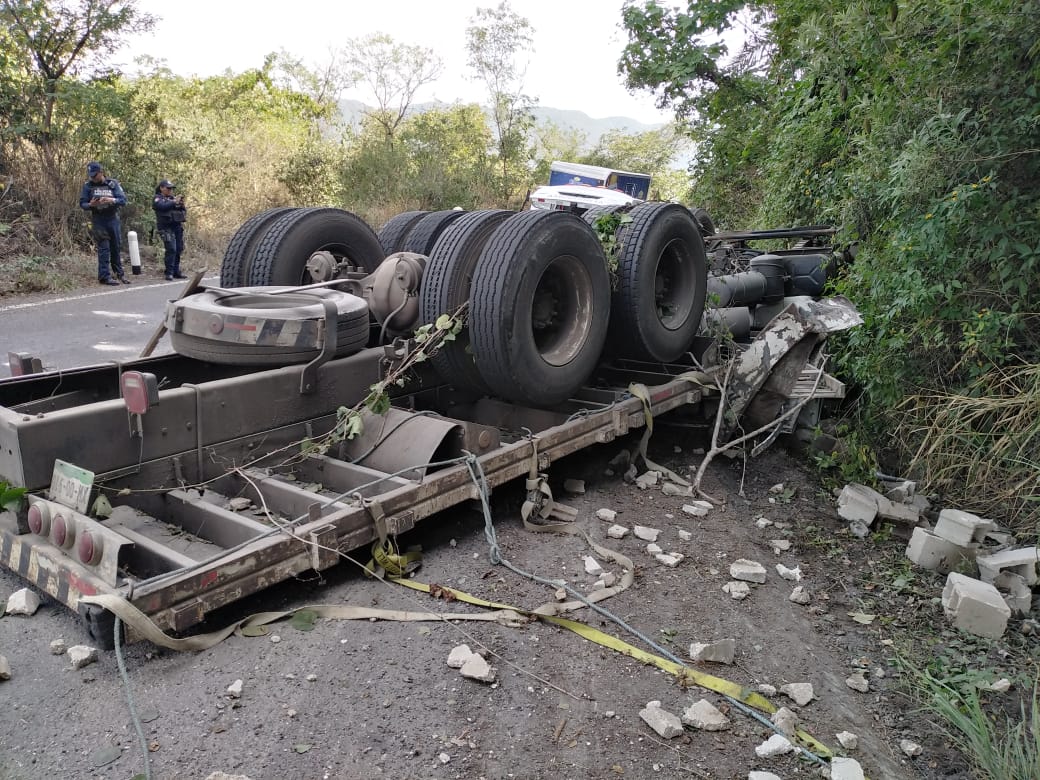 Se trató de la volcadura de una plataforma la cual quedó completamente de cabeza, se reporta el conductor con lesiones y al lugar de los hechos llego personal de sirena de Jalcomulco para brindar atención médica a la persona herida.